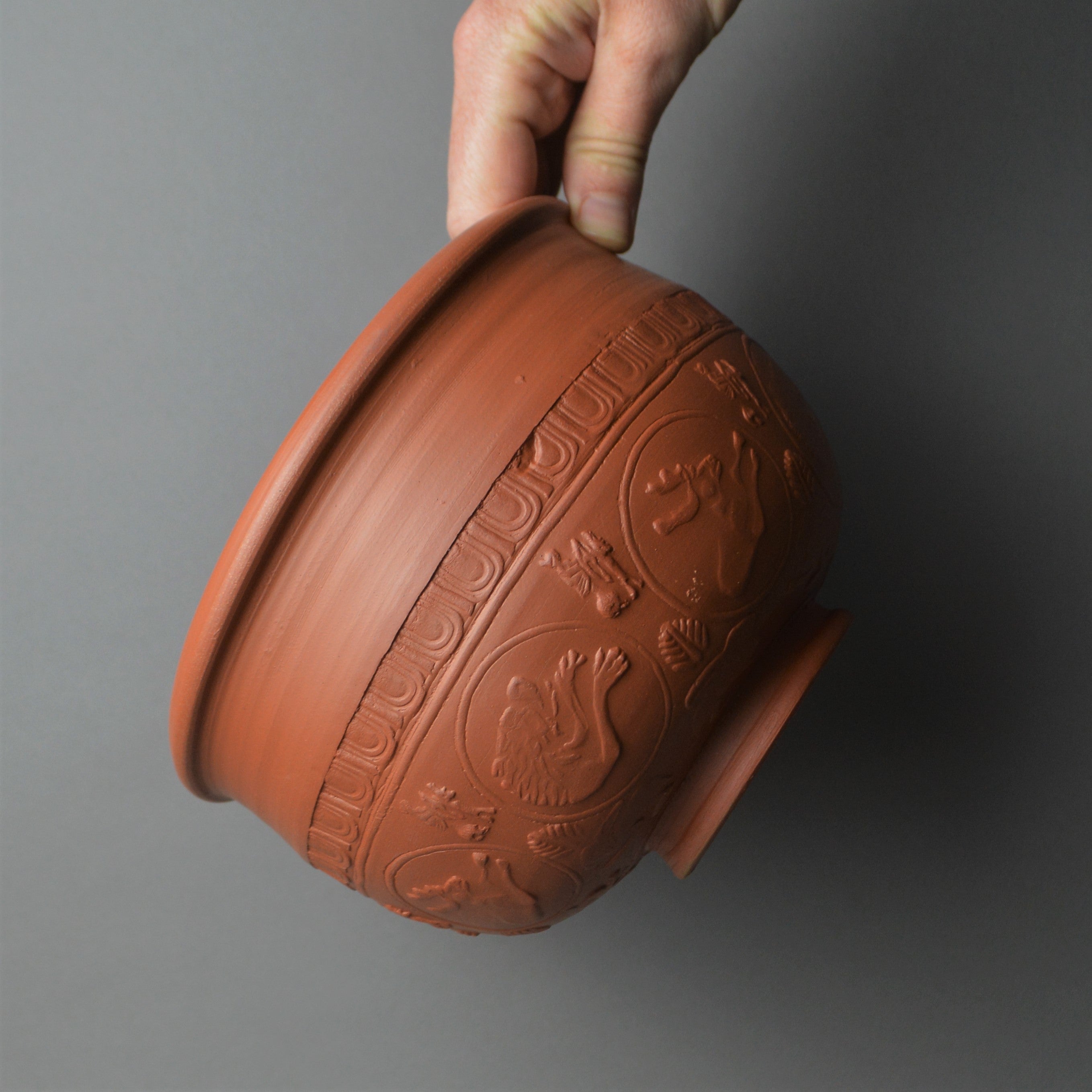 As with all of our museum-quality replicas, this piece has been fired to achieve an authentic finish. Like the original, it is unglazed and has no modern finishes applied. As a result, this pot does not meet modern health and safety standards, and although decorative, we recommend that you refrain from using this pot should not be used for its original purpose.
