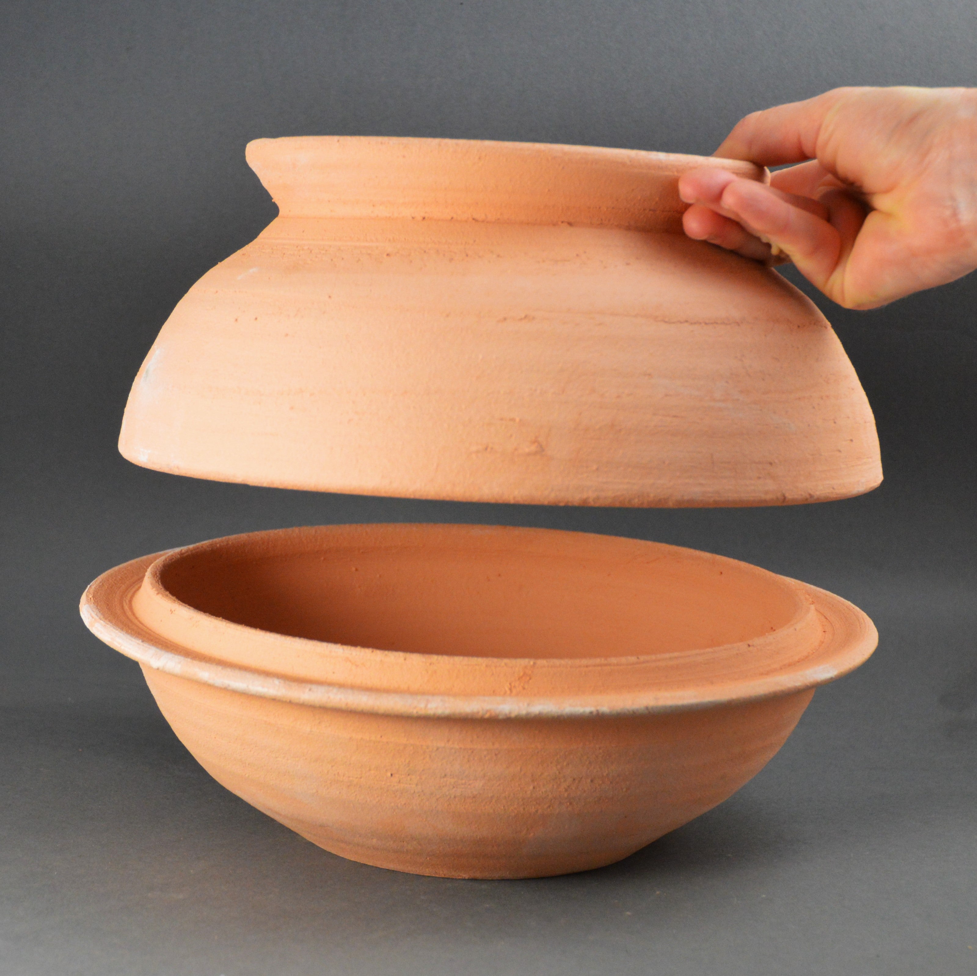 This is a Museum Quality Replica made using the tools and techniques that would have been used during the Roman era. This is an unglazed pot with a porous surface. It will absorb some of the flavours during the cooking process, adding to the flavour of future dishes. However, it also means that this pot does not meet modern Health and Safety standards, so we do not advise using it for cooking. When the Romans cooked in these pots, they applied sufficient heat to the pot and contents to ensure that all bacteria were killed. Heating to over 70°C for at least 10 minutes would have killed most disease-causing bacteria, and temperatures of 100°C would do even more.