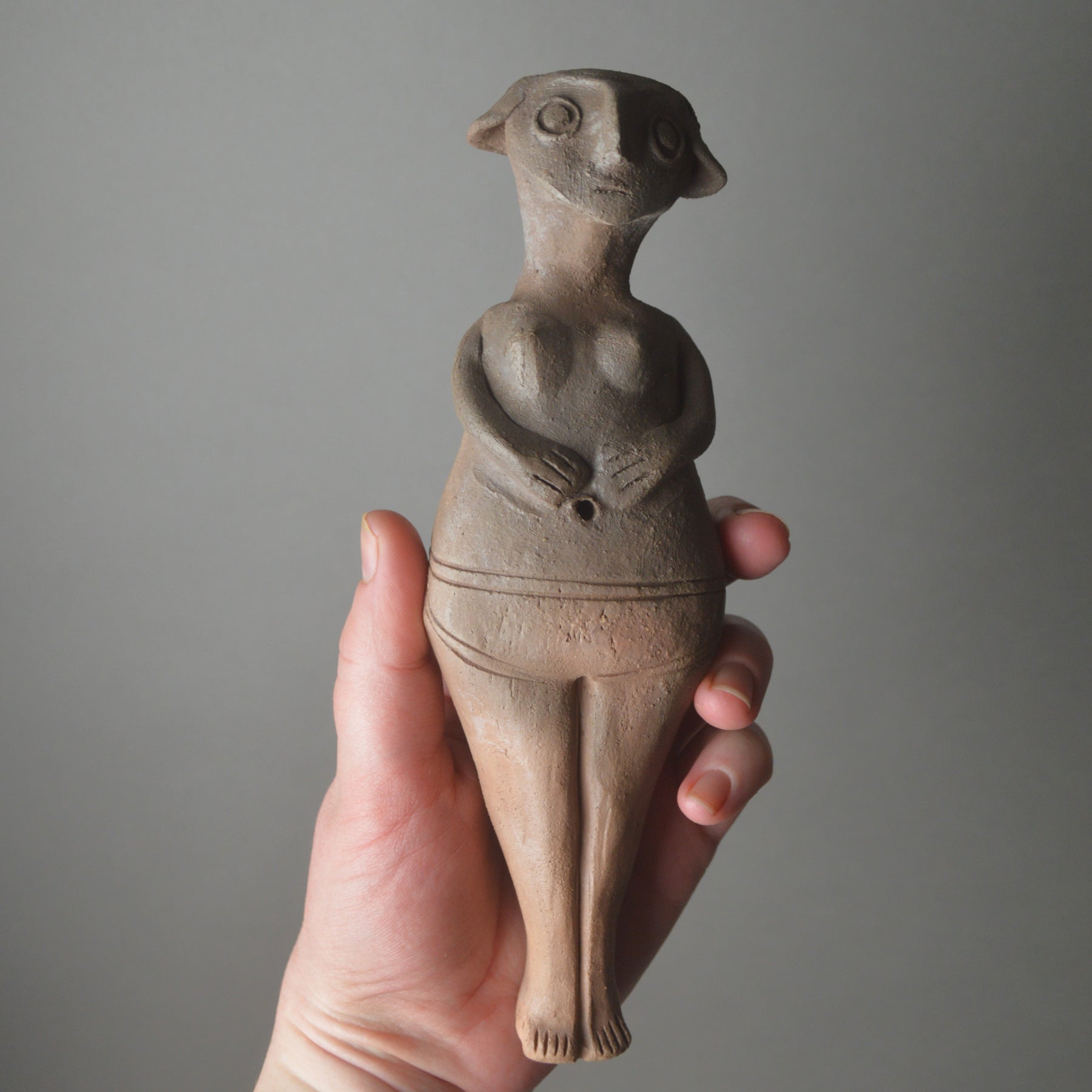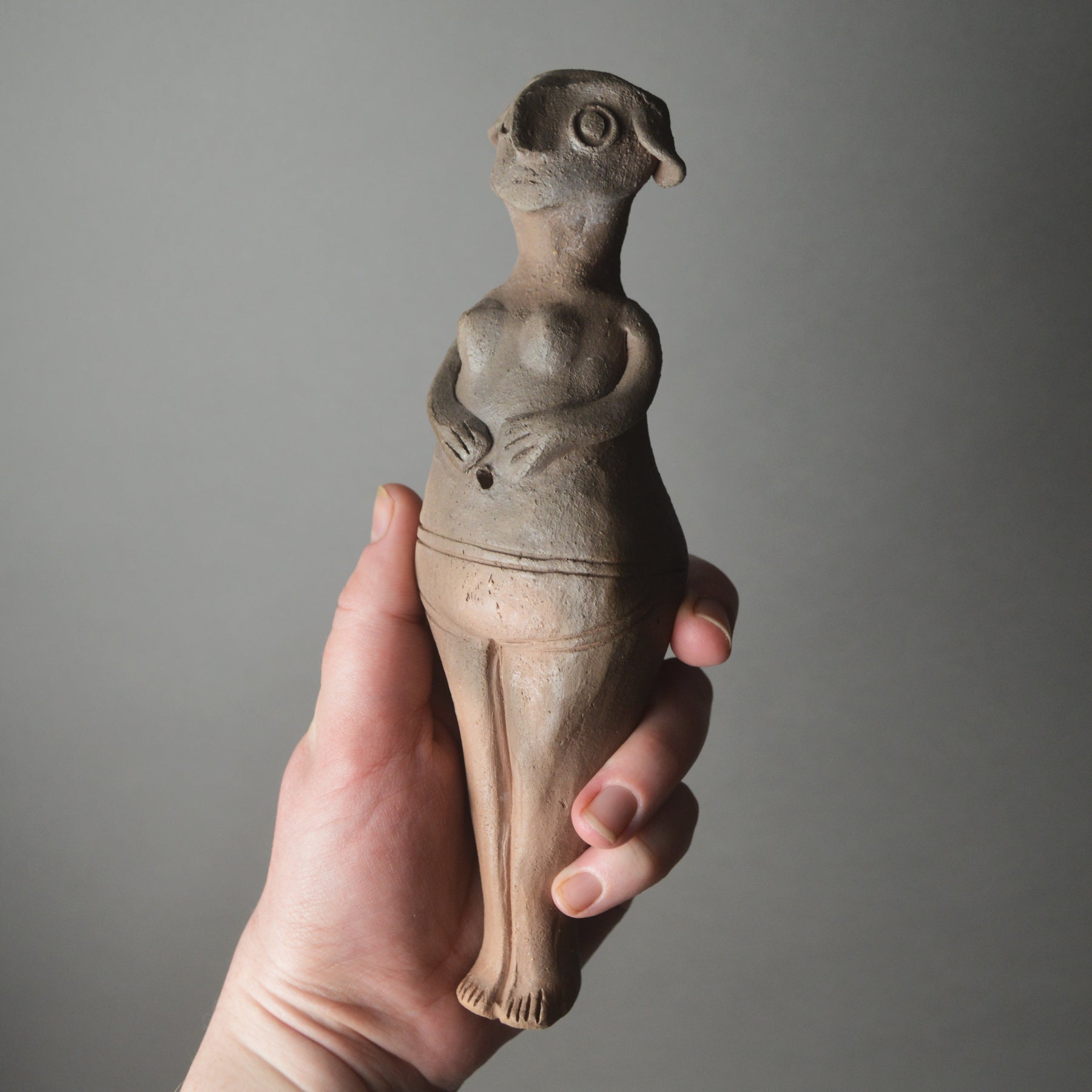 Although we may never know her exact purpose, figures like this are commonly found in domestic spaces, tombs, and shrines. It’s believed they served ritual or votive functions, offering protection, fertility, or invoking divine favour. In her simplicity lies her strength, an object meant to be handled, held, and honoured.
