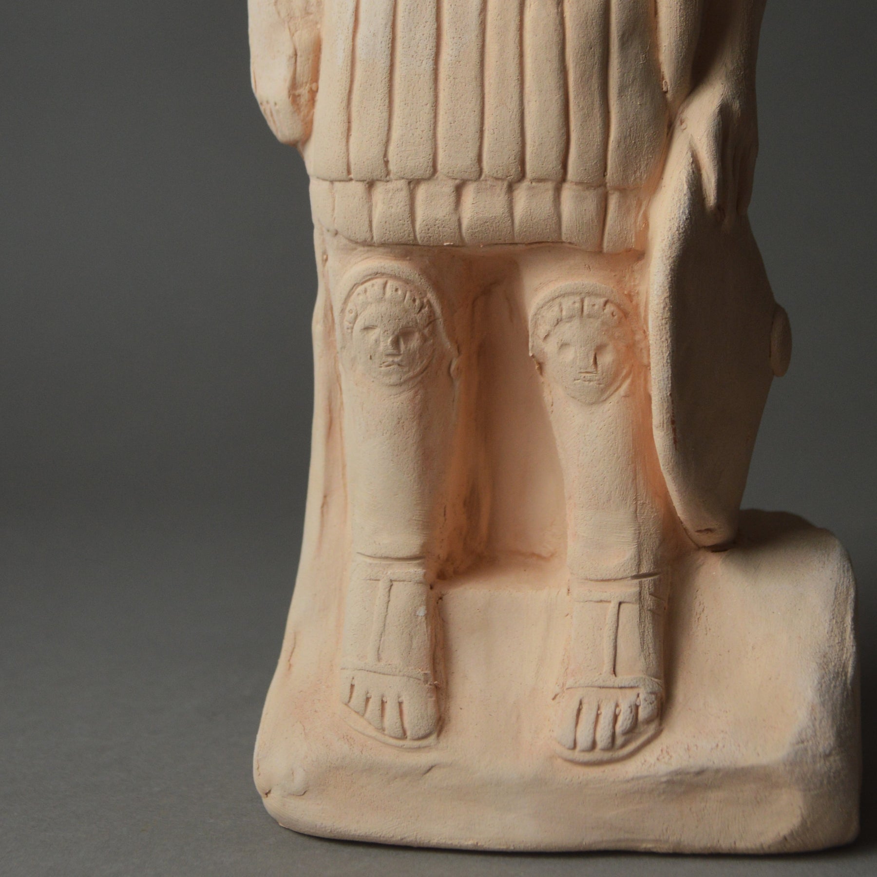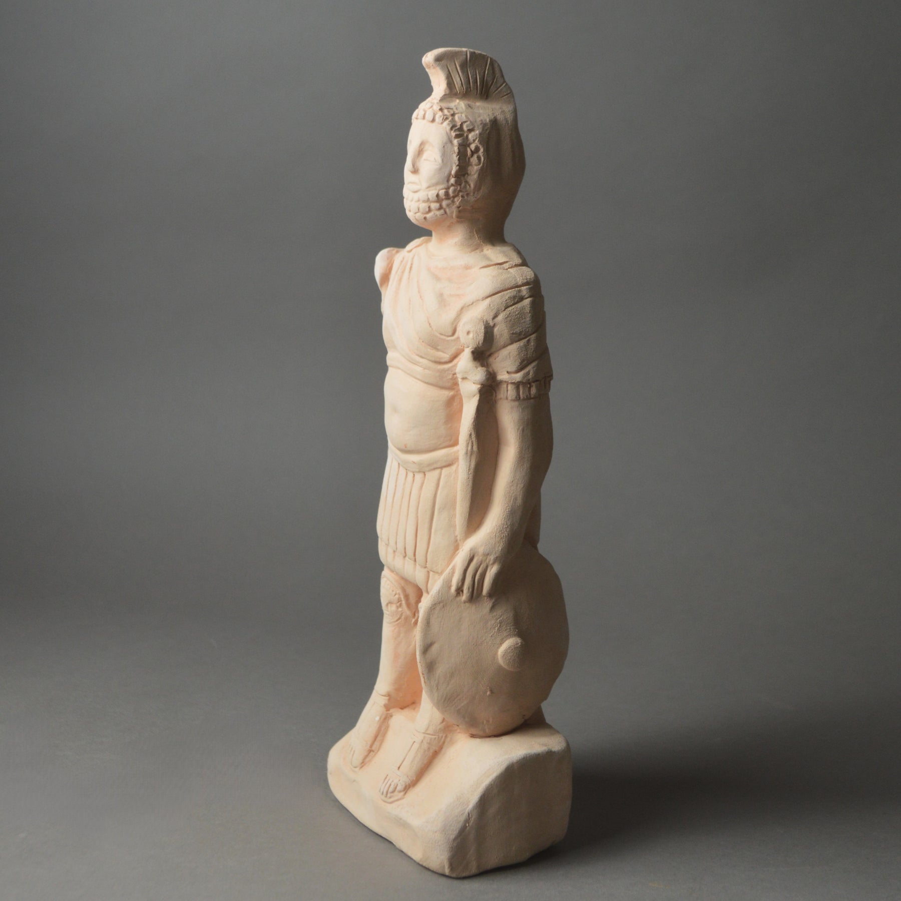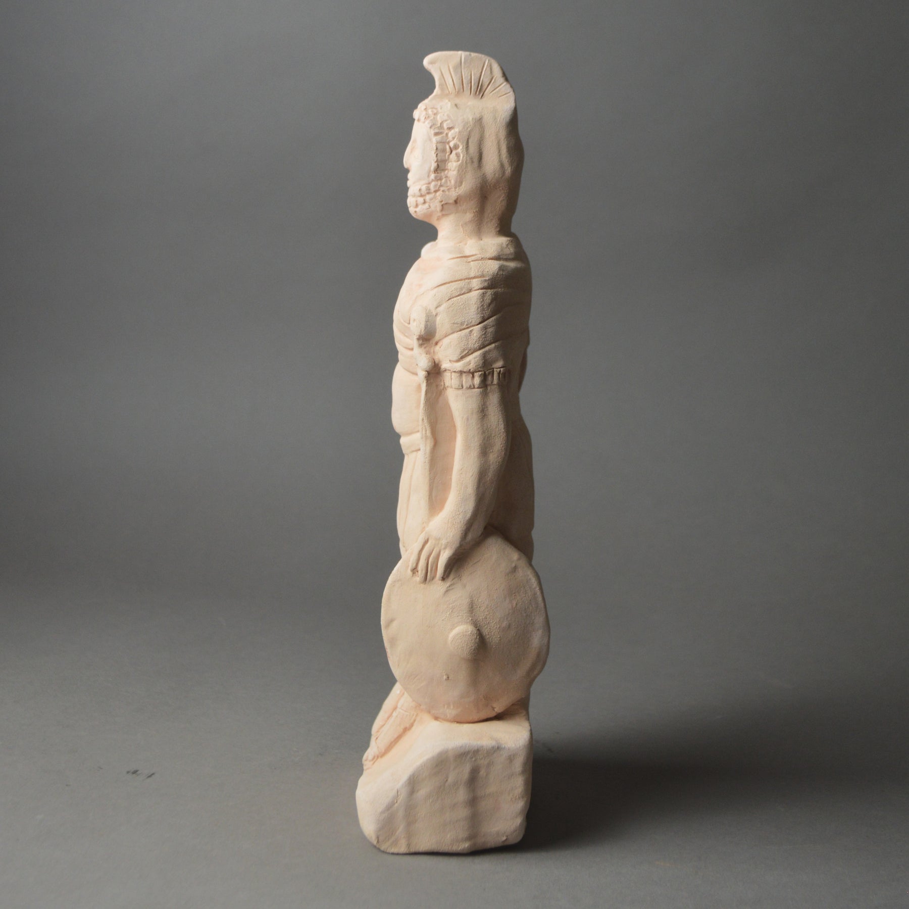 The original was carved in stone, but we have reimagined this powerful figure in clay, as a Roman potter might have done. Crafted from sandy earthenware to echo the colour and texture of the original sandstone, the surface retains subtle tool marks and gentle irregularities, giving it the same tactile, provincial quality as Roman shrine objects.
